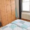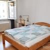 Schlafzimmer mit Bett 160x200 cm , Kleiderschrank, Nachttisch.