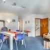 Hübsches möbliertes 1-Zimmer-Apartment mit 30 m² Dachterrasse in Milbertshofen. 3. Etage ohne Lift, Wohn-/ Schlafraum mit komfortablem Stapelbett, das bei Bedarf als Doppelbett genutzt werden kann. Kleine separate ...