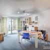 Der großzügige Wohn/Schlafbereich bietet ein Doppelbett (1.60x2.00), einen Essbereich für 4 Personen, sowie ein gemütliches Sofa mit TV. Dank praktischer Kommoden und Regale ist genügend Stauraum vorhanden; von hier ...