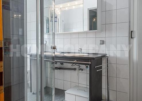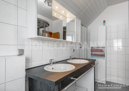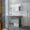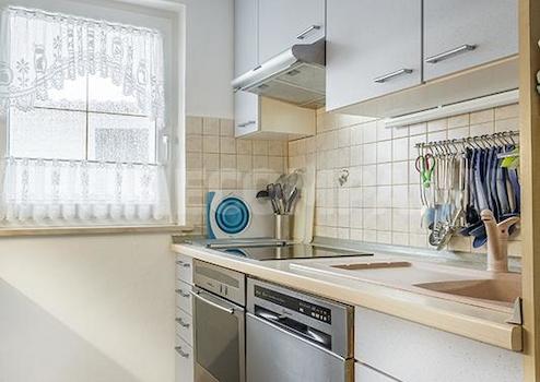 Die Küche mit Fenster ist sehr gut ausgestattet (Spülmaschine, Mikrowelle, Dunstabzug, Backofen und Induktionskochfeld). Das Bad mit Fenster und zwei Waschbecken bietet außer der Badewanne auch eine große Glasdusche.