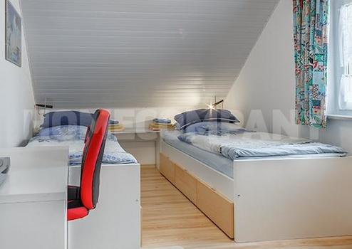 Helle, möblierte 4-Zimmer-Doppelhaushälfte Nähe Dachau, in Bergkirchen-Lauterbach. Großer Wohnraum mit Sitzgruppe, Schwedenofen, Esstisch für sechs Personen und Zugang zur Terrasse. Schlafmöglichkeiten im geräumigen Schlafzimmer mit zwei Einzelbetten, die bei Bedarf auch zusammengestellt werden können. Weitere einzelne Schlafmöglichkeiten im kleinen Schlafzimmer. Im Souterrain gibt es zwei weitere Betten , das gleichzeitig ein weiteres Wohnzimmer darstellt.