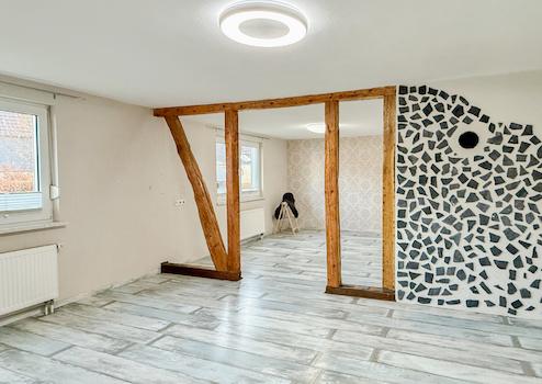 2014-2017 Komplettrenovierung des Wohnhauses + 2 Bäder, Böden, Wände + Fachwerk freigelegt