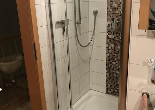 Obergeschoss 3 Zimmer Bad mit Fußbodenheizung, Dusche, WC, Badewanne, Bad.
