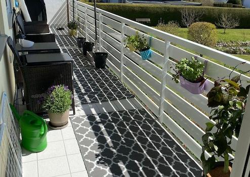 Balkon, Garten, Keller, Duschbad, Gäste-WC, Parkett, Laminat, Fliesen