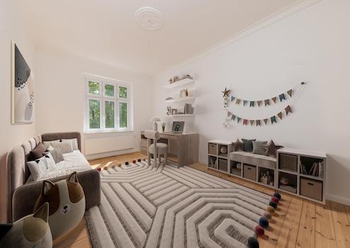 Die Wohnung besticht durch ihren klassischen Altbau-Charme der Gründerzeit mit hohen Decken und verspielten Stuckelementen, neu eingebauten zweifach verglasten Doppelflügelfenstern, modernisierten Ausstattungsdetails sowie einer durchdachten Raumaufteilung mit großzügiger Küche, fünf Schlafzimmern, zwei stilvoll modernisierten Tageslichtbädern mit tollen Muschelteigfliesen und Badewannen sowie zwei Balkonen mit neuen Echtholzdielen für den Außenbereich und Blick ins Grüne. Dank der vor wenigen Tagen abgeschlossenen Sanierung (2025) ist die Wohnung sofort bezugsfrei. Sie eignet sich ideal für Familien, die Westberlins Vorzüge in beruhigter gutbürgerlicher Lage schätzen und die eigenen Kinder stadtnah und trotzdem entschleunigt großziehen möchten.