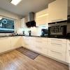 Der neu errichtete, moderne Wintergarten erweitert den Wohnraum auf elegante Weise und schafft einen lichtdurchfluteten Übergang zwischen Innen- und Außenbereich. In den Wohnräumen wurde überwiegend hochwertiger Vinylboden verlegt, ergänzt durch Fliesen in den Bädern und funktionalen Bereichen, wodurch ein stimmiges und pflegeleichtes Gesamtbild entsteht.