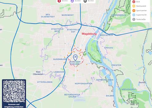 Die Anbindung an den öffentlichen Nahverkehr ist sehr gut: Straßenbahn- und Bushaltestellen befinden sich in kurzer Entfernung und ermöglichen eine schnelle Verbindung in die Innenstadt, zum Hauptbahnhof sowie in andere Stadtteile. Autofahrer profitieren zudem von der guten Erreichbarkeit der Leipziger Straße und der schnellen Anbindung an die Autobahnen A14 und A2.