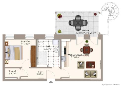- offener Wohn- und Kochbereich mit Zugang zum Balkon