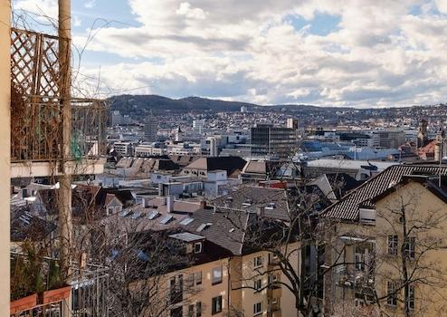 - Panoramablick auf die City aus dem Wohnbereich (diagonal - aus dem Wohn-/Esszimmerbereich)