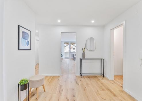 Diese rund 80 m² große, umfassend renovierte 3-Zimmer-Wohnung vereint moderne Wohnqualität mit einem klaren hochwertigen Anspruch. Echtholzparkett sorgt in sämtlichen Räumen für eine warme, elegante Atmosphäre. Das fugenlose Badezimmer besticht durch ein reduziertes, zeitgemäßes Design und vermittelt ein exklusives Spa-Gefühl, während das separate WC zusätzlichen Komfort im Alltag bietet.