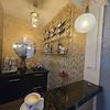 Oder Sie kochen etwas in der bis zur Decke mit schwarz (metro)ge-fliesten Küche. Das beleuchtete Lichtband aus Hängestahlschränken mit Stabglas wähnt Sie mehr in einer Cocktailbar als Küche.