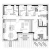 Anmutig und modern ist die Architektur des Energiesparhauses mit Satteldach. Die Fassade wird von einer waagerechten Holzverschalung und der Auswahl der Fensterformate geprägt. Der Grundriss des Hausentwurfes sieht im ...