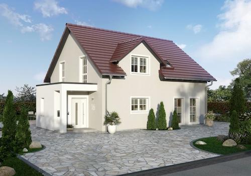 Ungebrochen ist die Begeisterung für das Bauen und Wohnen im Landhausstil. Dieser Hausentwurf interpretiert den Landhausstil in einem modernen Erscheinungsbild. Eine Wohnraumerweiterung mit überdachtem Hauseingang ...