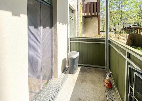 Das helle Wohnzimmer mit integrierter Küchennische bildet das Herzstück der Wohnung und ist ideal für ein offenes, kommunikatives Wohnen. Die Fenster sorgen für ein angenehmes Raumgefühl, während der Südbalkon zum Entspannen und Genießen der Sonne einlädt. Die Küchennische ist smart integriert und mit modernen Einbaugeräten ausgestattet.