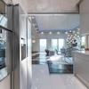 Die hochwertige Schreinerküche ist stauraumoptimiert und mit Gaggenau und Miele Geräten ausgestattet.