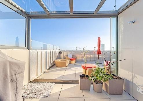 Im 23. Stock begrüßt einen der lichtdurchflutete Wintergarten und eine einzigartige Dachterrasse mit einem unvergleichbaren 360 Grad Blick über München bis in die Alpen. Hier könnte man ohne grossen Aufwand noch ein Schlafzimmer und ein Badezimmer errichten.