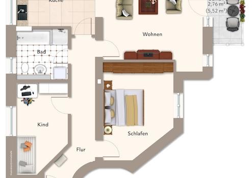- ca. 92,48 m² große 3-Raum-Wohnung