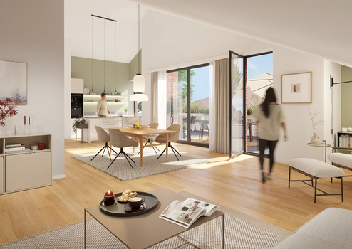Diese Penthouse-Wohnung im Dachgeschoss ist die hochwertigste Einheit des Hauses: lichtdurchflutet, großzügig und mit außergewöhnlicher Außenfläche. Mittelpunkt ist die rund 40 m² große Dachterrasse mit weitem Blick über die Hengtestr. – ideal für gemütliche Abende, Essen im Freien und entspannte Stunden. Im Inneren bietet die Wohnung mit ca. 125,78 m² ein klar gehobenes Raumkonzept: ein großer Wohn- und Essbereich mit offener Küche, ein Schlafzimmer mit Ankleide sowie ein separates Gäste-WC.