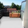 - neuer Balkonbelag in betongrau mit in den Boden integrierter Regenabflussrinne