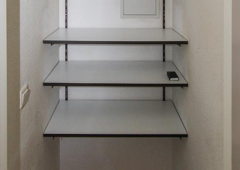 - Abstellraum mit Regalen in einem großen Einbauschrank im Bereich der Diele