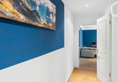 Das Schlafzimmer überzeugt mit einem komfortablen Doppelbett, Kissen und Decken sowie ausreichend Stauraum im Kleiderschrank. Die separate Küche ist voll ausgestattet – inklusive Geschirrspüler, Backofen, Gefrierschrank, Toaster und allem, was man zum Kochen braucht. Das Tageslichtbad bietet eine Badewanne, frische Handtücher sowie eine integrierte Waschmaschine.