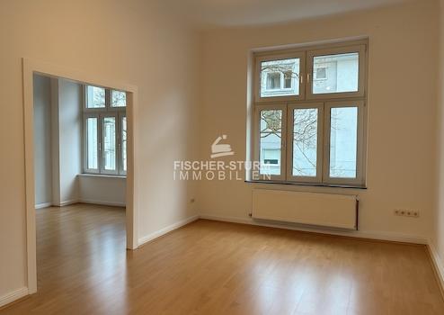 Schade! Sie dürfen nur eine Etage durch das stilvolle Treppenhaus gehen, denn Sie wohnen in der bel étage! Alle Räume gehen vom großzügigen Flur ab: Wohn- und Esszimmer sind altbautypisch mit einem Durchgang verbunden, wobei das Wohnzimmer sogar einen Erker hat. Beide Räume liegen zur Straßenseite. Das Schlafzimmer (mit Duschbad `en suite´) liegt - genau wie die angenehm große Küche mit kleinem Balkon - zur Rückseite des Hauses.