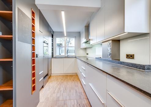 •Schreinereinbauküche mit Weinschrank und Tellerwärmer