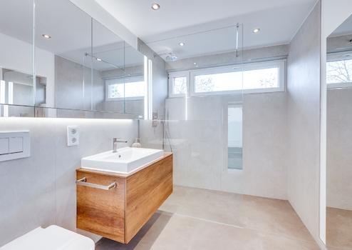 •Hochwertiges Tageslichtbad mit Walk-In-Dusche im ersten Obergeschoss