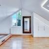 •Im Dachgeschoss: maßgefertigtes Schreinerbett mit integrierter Beleuchtung und an die Dachschrägen angepasste Schreinereinbauschränke