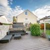 Das Herzstück des Erdgeschosses bildet ein offener, großzügiger Wohnbereich mit hellem Stäbchenparkettboden. Die moderne Schreinerküche ist harmonisch in den Wohnraum eingebunden und schafft gemeinsam mit dem Wohnzimmer eine offene und einladende Einheit. Über dem Esstisch befindet sich ein abgehängtes Deckenelement mit integrierter Beleuchtung, das diesen Bereich besonders hervorhebt. Von hier aus gelangen Sie auf die Terrasse, die mit einer gemütlichen Lounge-Ecke zum Verweilen einlädt. Ein kleines Gartenhaus sorgt für zusätzlichen, praktischen Stauraum. Vom Eingangsbereich aus erreichen Sie zudem das renovierte Gäste-WC. Darüber hinaus ist das gesamte Erdgeschoss mit Rollläden ausgestattet.
