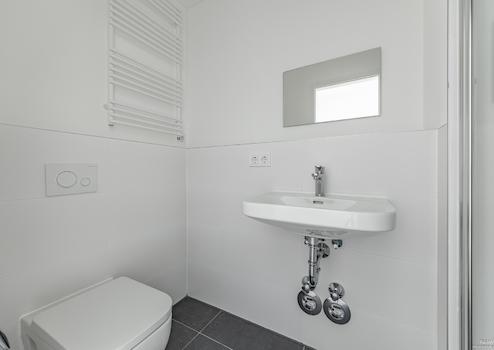 Das Badezimmer mit bodengleicher Dusche sowie die zeitgemäße Haustechnik mit Fußbodenheizung und dezentraler Wohnraumlüftung erfüllen aktuelle energetische und wohnwirtschaftliche Standards und unterstützen planbare Betriebskosten – ein entscheidender Faktor für die Kalkulationssicherheit von Kapitalanlegern.