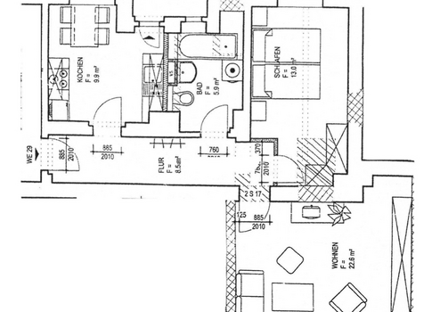 Diese helle, charmante 2-Zimmer-Wohnung mit ca. 62 m² Wohnfläche befindet sich im Hochparterre eines gepflegten, denkmalgeschützten Mehrfamilienhauses aus dem Jahr 1926. Sie wurde im Rahmen einer umfassenden Sanierung im Jahr 2010 modernisiert und überzeugt durch einen intelligenten Grundriss ohne Durchgangszimmer. Die Räume sind mit hochwertigem Echtholzparkett ausgestattet, was dem Wohnambiente eine warme und stilvolle Note verleiht. Die gemütliche Küche bietet ausreichend Platz für einen Essbereich und verfügt über ein Fenster – ideal für Tageslicht und gute Belüftung. Besonders hervorzuheben ist die Loggia mit Blick ins Grüne, die direkt von der Küche aus begehbar ist und zum Entspannen im Freien einlädt. Das deckenhoch geflieste Bad verfügt über eine Dusche sowie einen Waschmaschinenanschluss. Halogenstrahler in Flur und Bad sorgen für eine moderne Beleuchtung. Zusätzlich bietet die Wohnung ein eigenes Kellerabteil, einen Fahrradraum sowie Zugang zum gemeinschaftlichen Trockenboden.