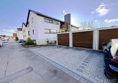 Für Fahrzeuge stehen drei Garagen sowie Stellplätze vor den Garagen zur Verfügung.