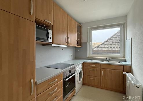 Bad und Küche sind komplett eingerichtet und haben jeweils ein Fenster.