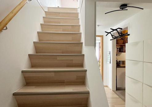 * Laminat in Holz und Fliesenoptik in OG und DG