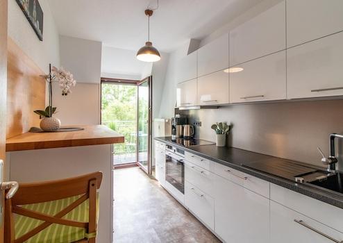 Echtholzparkett, Balkon, Personenaufzug, Keller, Luxus-Einbauküche mit Geschirrspüler, komplette Ausstattung/Einrichtung (siehe Inventarliste auf Anfrage).