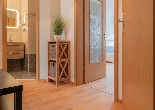 man Zugang zu einem sonnigen Balkon. Die Wohnung hat eine hochwertige, komplette Ausstattung. Das Bad verfügt über eine Wanne mit Duschabtrennung, ein WC und eine Waschmaschine/Waschtrockner.