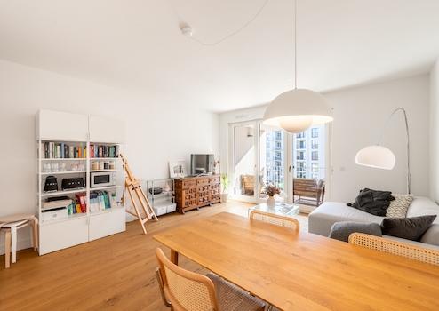 Die moderne Einbauküche ist mit hochwertigen Geräten ausgestattet und lässt das Kochen zum Genuss werden. Praktische Einbauschränke bieten ausreichend Stauraum und halten die Wohnung ordentlich und aufgeräumt.