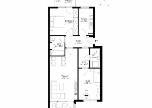 Wohnfläche 72,67 m²