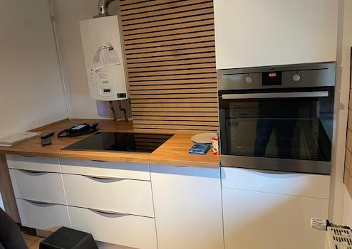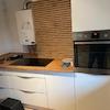 Einbauküche mit Backofen, Kochfeld und Geschirrspüler.