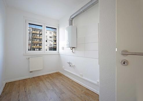 Die separate Küche bietet nicht nur ausreichend Platz für deine Kochabenteuer, sondern punktet auch mit einem Fenster, das für viel Tageslicht und frische Luft sorgt. Der praktische Waschmaschinenanschluss macht den Alltag noch komfortabler. Die Warmwasseraufbereitung erfolgt dezentral über einen Gasdurchlauferhitzer.