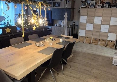 • Großzügiges Wohnzimmer mit Essbereich – hell, offen und mit Zugang zum kleinen Balkon