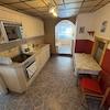 Insgesamt verfügt das Haus über drei Zimmer, darunter ein Schlafzimmer, sowie ein Badezimmer. Die Fußböden sind mit verschiedenen Materialien wie PVC/Linoleum, Teppich und Fliesen ausgestattet, was für eine gemütliche und vielfältige Atmosphäre sorgt. Die Ausstattung ist einfach, aber funktionell.