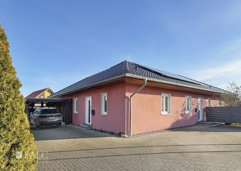 Der im Jahr 2011 errichtete Winkelbungalow mit separater Einliegerwohnung befindet sich auf einem ca. 765 m² großen Grundstück und überzeugt durch eine moderne, nachhaltige Bauweise sowie eine durchdachte Raumaufteilung. Die Immobilie wurde in ökologischer Holzrahmenbauweise errichtet und mit einer hochwertigen Holzfaserdämmung ausgestattet. Diese Kombination sorgt für ein angenehmes Raumklima zu jeder Jahreszeit, einen niedrigen Energieverbrauch und eine nachhaltige Wohnqualität. Das Dach ist mit langlebigen, engobierten Dachsteinen eingedeckt. Insgesamt stehen ca. 188 m² Wohnfläche zur Verfügung, die sich auf das Haupthaus und die Einliegerwohnung verteilen.