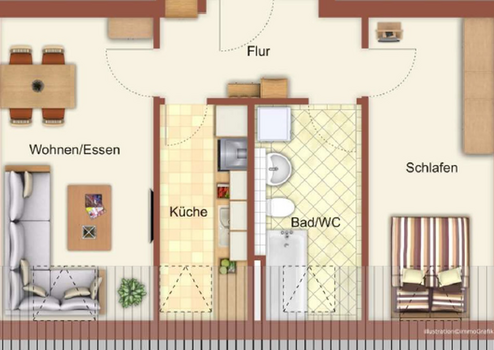 Eine Zweiraumwohnung mit guter Aufteilung und folgenden Ausstattungsmerkmalen:
