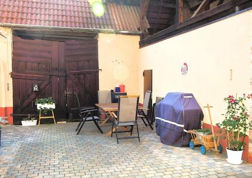 Im Innenhof spenden alte Mauern an heißen Sommertagen angenehmen Schatten, während sich im Garten die lauen Sommernächte in entspannter Atmosphäre genießen lassen – zwei wunderbare Rückzugsorte zum Wohlfühlen.
