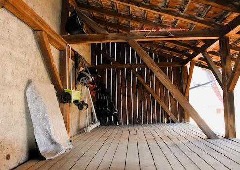Über der Garage befinden sich weitere Abstellmöglichkeiten, die über die angeschlossene Scheune erreichbar sind – diese bietet zudem Potenzial für eine zukünftige Wohnraumerweiterung.