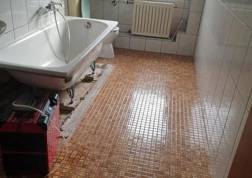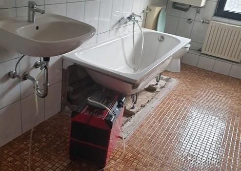 Im Bad werden noch Restarbeiten, insbesondere die Reparatur der Badewanne vorgenommen.