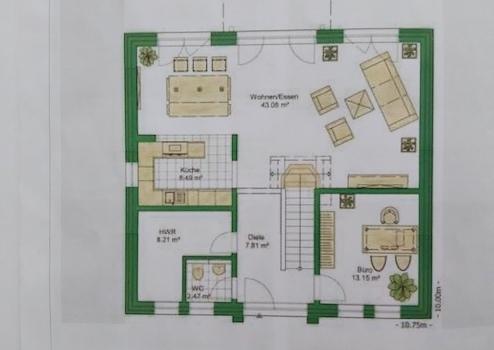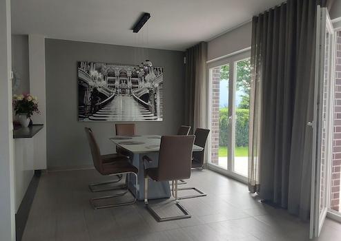 Großzügiges modernes, lichtduchflutetes Einfamilienhaus, auch zur Teilgewerblichen Nutzung geeignet. Das Haus verfügt über 5 Zimmer, eine große Terrasse ca. 40 qm, eine Garage und sechs weitere PKW-Stellplätze sind vorhanden. Separates Balkon in OG, erreichbar über Schlaf und Kinderzimmer.