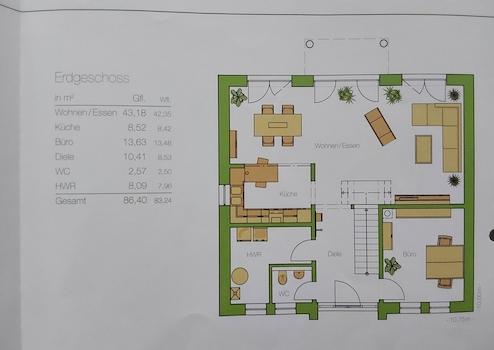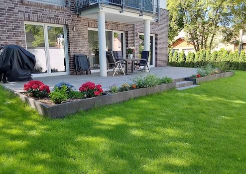 Balkon, Terrasse, Garten, Vollbad, Duschbad, Einbauküche, Gäste-WC, Laminat, Fliesen